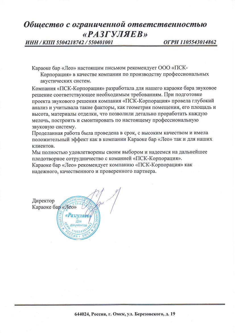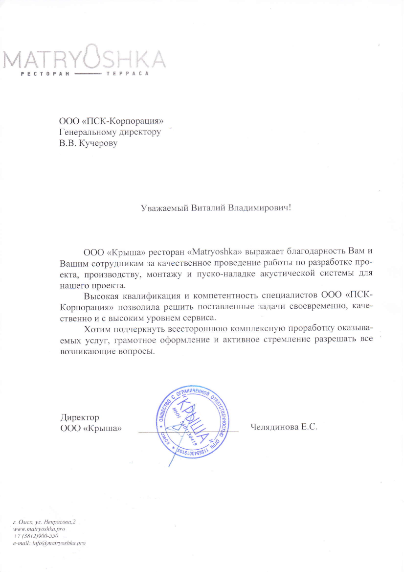 Psk - прекрасная акустическая система, шикарный чистый звук в сочетании с прекрасным тех.составом. Установка и настройка системы заняла считанные дни. Световая инсталляция так же меня просто поразила. Скорость установки и настройки системы у меня в голове так и не уложилась. Очень довольны, спасибо огромное.