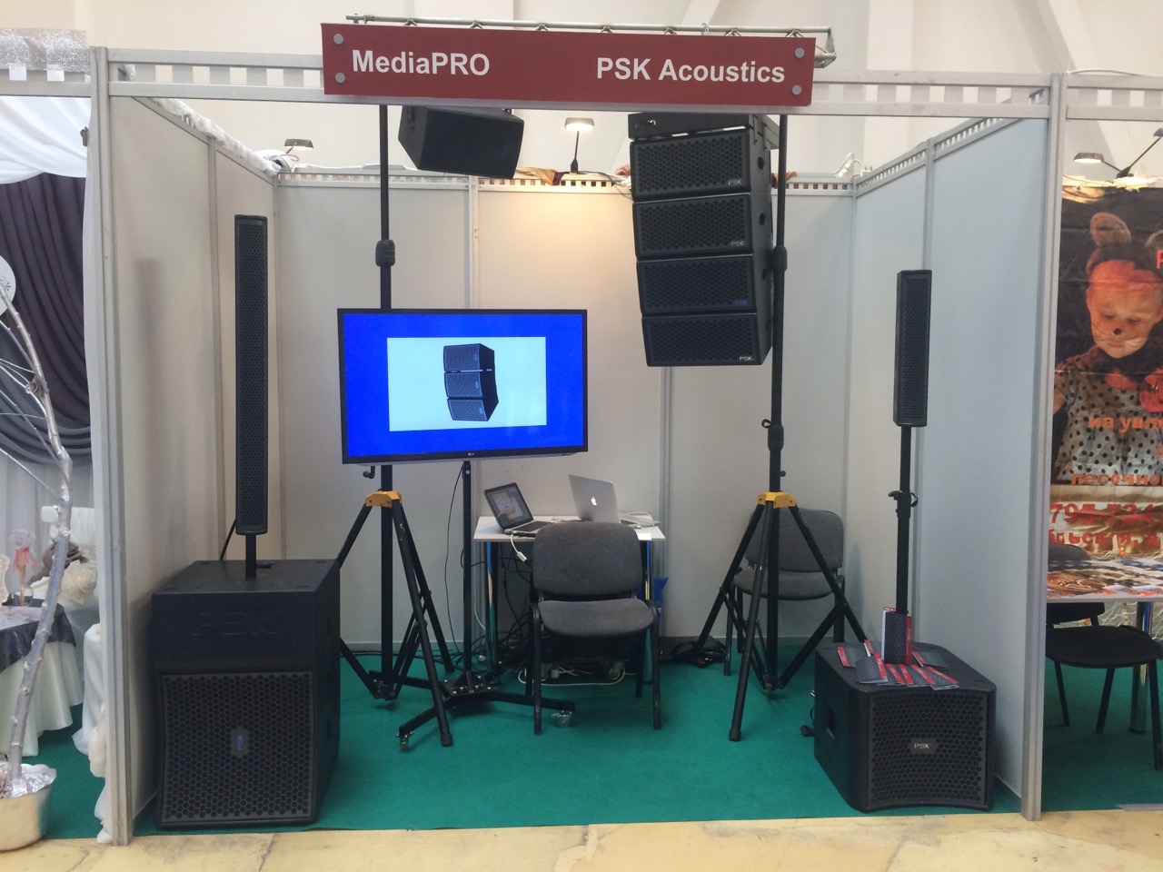 Участие в выставке "Свадебный Омск - 2015". Представили участникам: линейный массив из серии CLA883, полнодиапазонный акустических кабинет М1515МК2, вертикальный линейный массив VA 123, низкочастотный малогабаритный кабинет SPF 15 и новый акустический кабинет GK15.
